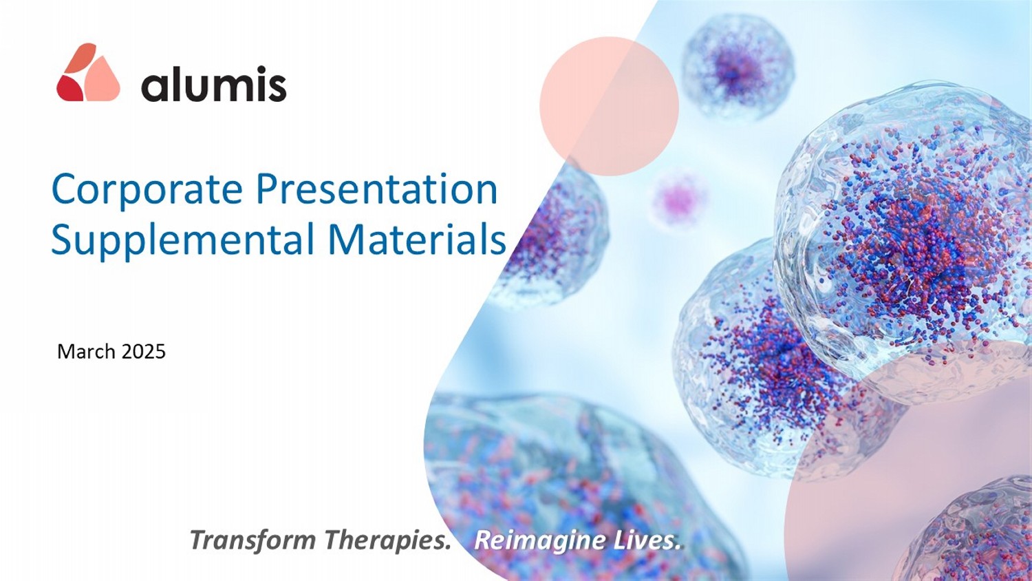 This communication contains forward-looking statements within the meaning of federal securities laws, including the “safe harbor” provisions of the Private Securities Litigation Reform Act of 1995. Such statements are based upon current plans, estimates and expectations of management of Alumis Inc. (“Alumis”) and ACELYRIN, Inc. (“ACELYRIN”) in light of historical results and trends, current conditions and potential future developments, and are subject to various risks and uncertainties that could cause actual results to differ materially from such statements. The inclusion of forward-looking statements should not be regarded as a representation that such plans, estimates and expectations will be achieved. Words such as “anticipate,” “expect,” “project,” “intend,” “believe,” “may,” “will,” “should,” “plan,” “could,” “continue,” “target,” “contemplate,” “estimate,” “forecast,” “guidance,” “predict,” “possible,” “potential,” “pursue,” “likely,” and words and terms of similar substance used in connection with any discussion of future plans, actions or events identify forward-looking statements. All statements, other than statements of historical facts, including express or implied statements regarding the proposed transaction; the conversion of equity interests contemplated by the agreement and plan of merger, dated as of February 6, 2025, by and among the parties (the “merger agreement”); the issuance of common stock of Alumis contemplated by the merger agreement; the expected filing by Alumis with the Securities and Exchange Commission (the “SEC”) of a registration statement on Form S-4 (the “registration statement”) and a joint proxy statement/prospectus of Alumis and ACELYRIN to be included therein (the “joint proxy statement/prospectus”); the expected timing of the closing of the proposed transaction; the ability of the parties to complete the proposed transaction considering the various closing conditions; the expected benefits of the proposed transaction; the sufficiency of the combined company’s capital resources; the combined company’s cash runway; the competitive ability and position of the combined company; the clinical pipeline of the combined company; and any assumptions underlying any of the foregoing, are forward-looking statements.